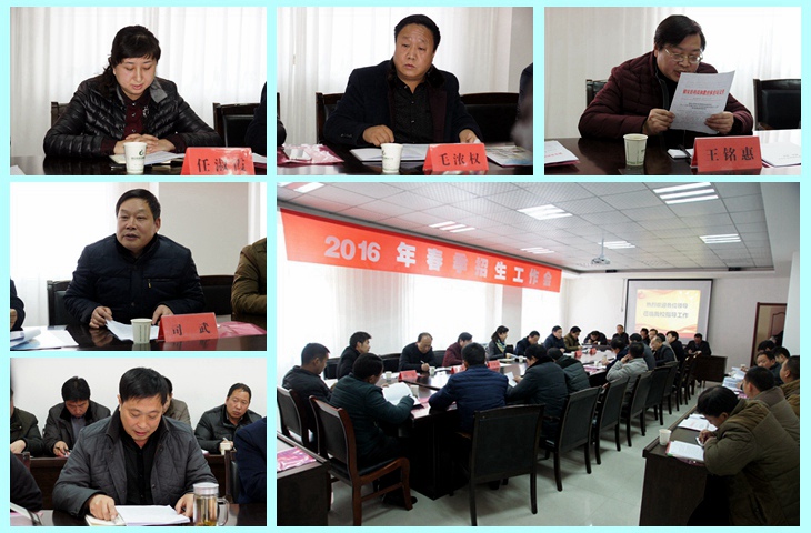 会上,县科教局局长毛浓权就职业教育发展提出了建设性意见和建议;副局长司武安排部署了2016年职业教育工作;县招办主任王铭惠宣读了2015年职业教育招生工作先进集体表彰决定;职业中学负责人在会上就学校办学情况、学生就业安置情况及国家发展职业教育的形势、政策等做了介绍。