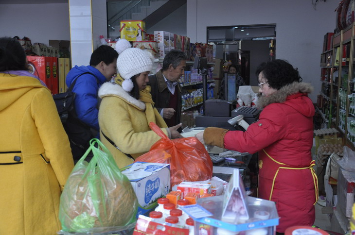 在七里峡永友服装超市,看衣服试衣服的乡亲们更是挤满了整个超市,联盟村在外工作连国庆领着父亲连全政来到超市专门给老爸买过年的洗衣服。