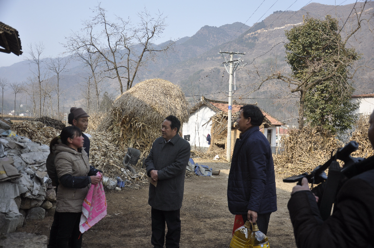 陈正斌先后深入到丰河村贫困户宁江红,因病返贫户宁江春、特困户孙从贵等困难群众家里与他们亲切交流谈心,详细了解他们的身体状况、家庭收入来源、产业发展、孩子在外打工收入等基本家庭情况,并亲手送上毛毯、棉衣、米、油等生活用品和慰问金。当了解到孙从贵家里住房困难,经济来源等实际生产生活困难时,陈正斌鼓励他们要坚定信心,克服眼下的困难,要发扬积极向上的乐观思念,靠勤劳实干,早日走出贫困,并要求村干部要积极帮助他们解决住房困难。
