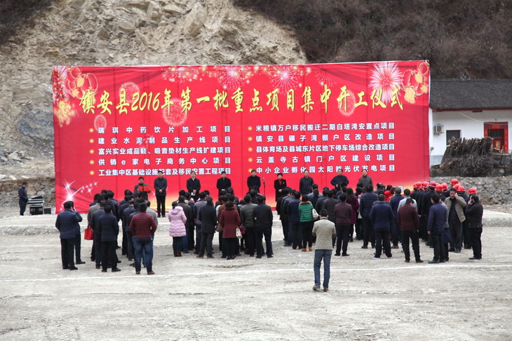 1月7日,全县2016年第一批重点项目集中开工仪式在县午峪工业园区举行,市委常委、县委书记李波宣布开工令,县长贾建刚讲话,县委常委、副县长刘文革主持,贺国琴、杨荣忠、白绍云、李阜灏、张华文参加。相关部门、企业业主分别介绍了项目基本概况并做表态发言。