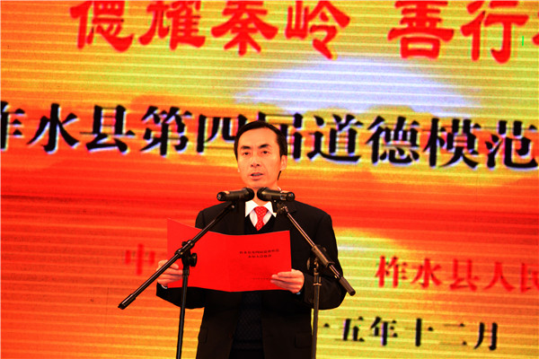 柞水县委常委、县委副书记谢建民在道德模范大会上致辞
