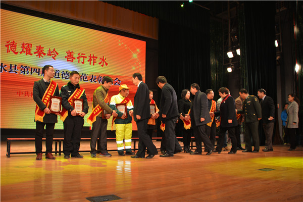 截止目前,共推选出各级道德模范82人,评选出柞水好人35人,共5人入选“陕西好人榜”,1人入选“中国好人榜”;2015年1人入选“陕西好人榜”,1人入选“中国好人榜”;“3?21”扑火英雄群体、黄国芳等14人被评为商洛市第四届道德模范;张德凤被评为陕西省第四届道德模范,并获得第五届全国道德模范提名奖。今年年初,县委宣传部、县文明办、县总工会、团县委、县妇联联合下发了《关于评选柞水县第四届道德模范的通知》,经各镇各部门层层推荐,共收到43个人选,最终表彰10人。表彰大会分为“助人为乐”、“诚实守信”、“敬业奉献”、“孝老爱亲”4个篇章,每个章节通过播放短片、演奏音乐、致敬词、颁奖等形式,现场诠释了震撼人心的道德之美,生动展示了道德模范的感人事迹和崇高精神。
