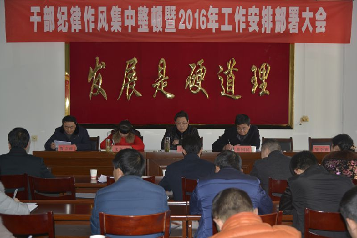 2月19日,发改局召开干部作风纪律教育暨2016年工作安排部署大会。发改局局长王庆水主持会议并作了重要讲话,纪检组长沈意珍就当前开展的干部作风纪律教育活动做了进一步安排,各分管领导就各自分管的工作进行全面的安排部署。发改局全体干部职工,物价局、粮食局主要负责人,兴隆公园筹建处全体干部参加了会议。