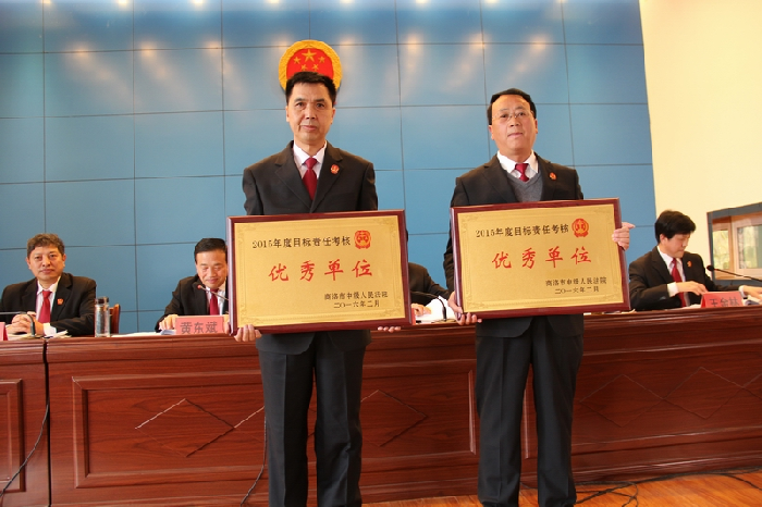 3月3日,全市法院院长工作会在商洛市中院召开,在总结回顾2015年工作情况、安排部署2016年工作任务的同时,会议还通报了全市基层法院去年案件质量评估情况,表彰了先进集体和个人。洛南法院去年案件质效评估综合指数以91.01分排名全市法院第一,目标责任制考核被评为全市法院优秀单位,这也是洛南法院连续第四年获得该荣誉。