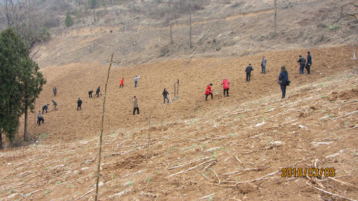 3月9日下午,青铜关冷水河村武家凹子的坡上,县委组织部、青铜关镇的干部、冷水河的村民,二百多人在冷水河村武家凹子开展春季植树造林活动,山坡上干部群众有的除草、有的开荒、有的挖坑、有的扶苗、有的填土,有的浇水,一排热火朝天的劳动景象,这是青铜关镇开展春季核桃建园的一个缩影。