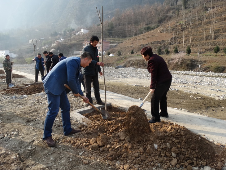 3月11日,在第38个植树节到来之际,市委常委、县委书记李波,县人大主任贺国琴、县长贾建刚、县政协主席杨荣忠等县四套班子主要领导来到高峰镇鱼坪村参加义务植树,为美丽乡村建设再添新绿。