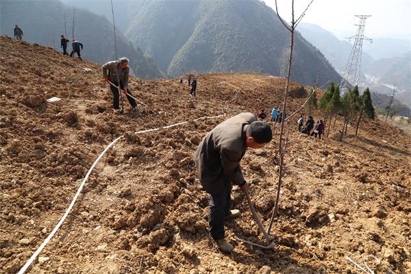 连日来,在永乐街道办青槐社区南门坡樱桃种植基地,只见群众有的挥锹铲土、有的扶树填土、有的培土浇水,一幅热火朝天的栽种大樱桃树场面。