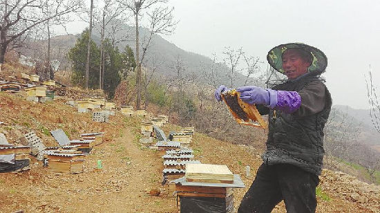 3月16日,刚脱贫的高峰镇青山村柳芳来正在查看蜜蜂生长情况,他不仅给包扶队归还了蜂种,自己已能独立地发展中华蜂养殖