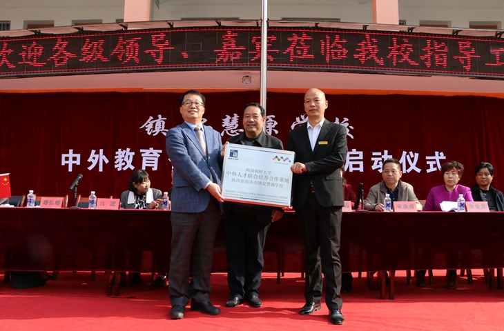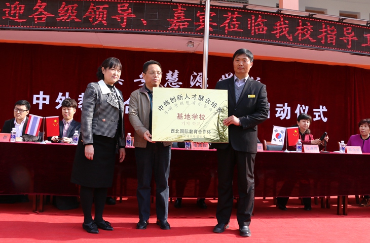 西北国际教育合作体、韩国朝鲜大学、陕西省国际交流中心新加坡部分别授予镇安慧源学校为“中韩创新人才联合培养基地学校”、“韩国朝鲜大学人才联合培养合作基地”、“新加坡建设局学院生源基地”。