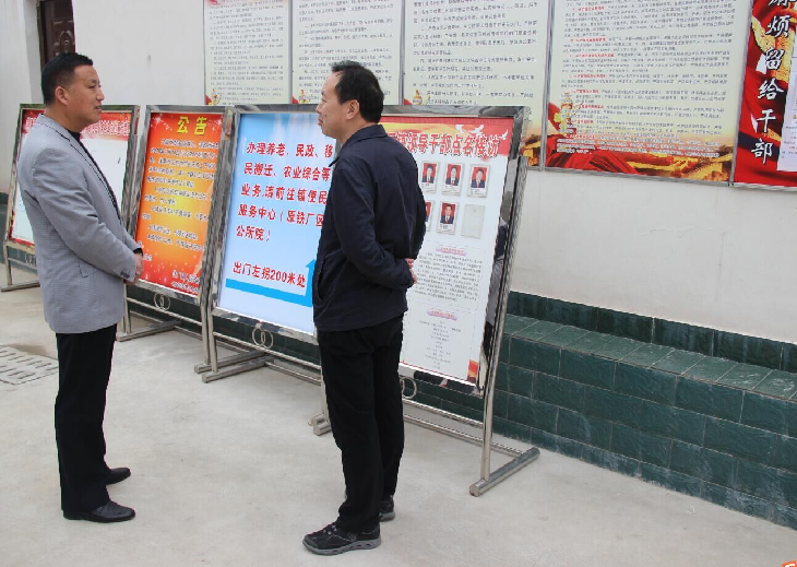 4月5日,县委常委、县委组织部部长黄天俊、组织部副部长蒋立勇等三人,来我镇检查指导“四位一体”基层党组织建设提升年活动的推进情况。黄天俊部长一行先后深入我镇庄河村、新联村、新声村、新民村和镇机关,通过听取讲解、查看展牌的布展和制度上墙情况等,对我镇“五项制度”、村级“五项举措”落实情况等进行了认真检查。