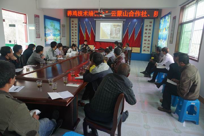 4月9日,洛南县云蒙山绿色动物养殖专业合作社与陕西康达尔农牧有限公司在合作社党支部党员活动室联合举办第三期养鸡技术培训班,来自城关、石门的20余位合作社社员参加了培训活动。合作社聘请杨凌职业技术学院史瑞仁教授为养鸡户讲解了关于腿禽病发生的原因及治疗方法。前来学习的养鸡户认真听讲,专心记录,和史教授进行了互动交流,并加微信联系,方便技术指导。社员们非常感谢合做社给他们提供的学习培训机会,不仅使他们能够现场接受专家指导,还让他们能够在平时饲养过程中通过电话、微信随时和专家取得联系,做好防疫防病,达到增产增效增收的目的。本次培训是今年以来云蒙山合作社组织的第三次养鸡技术培训活动。合作社党支部纳入全县贫困户55户,今年累计组织培训80余人,为全县精准脱贫工作做出了积极地贡献。
