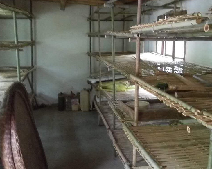 县蚕桑站干部指导贫困户制作的省力蚕台