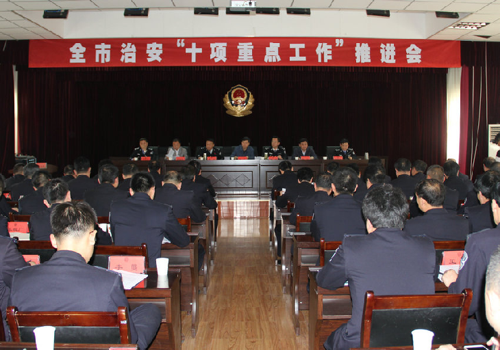 4月12日,全市治安“十项重点工作”推进会在镇安县公安局召开。市委常委、镇安县委书记李波,副市长、市公安局党委书记、局长雷雨,市公安局副局长李锋,县委常委、政法委书记杨清平,副县长、县公安局党委书记、局长赵安民,市公安局治安支队长张金水、政委郭晓阳等领导同志出席会议并讲话。会议由市公安局副局长李锋同志主持,镇安县委常委、政府常务副县长陈钊同志代表县政府到会致辞。参加会议的有各县(区)公安局长、分管治安工作的副局长、治安大队长及其内勤,镇安县公安局班子成员、各内设机构负责人、治安民警,各派出所所长、内勤以及市局办公室、警务保障处、宣传科负责人,治安支队领导和各大队负责人等100余人参加了会议。