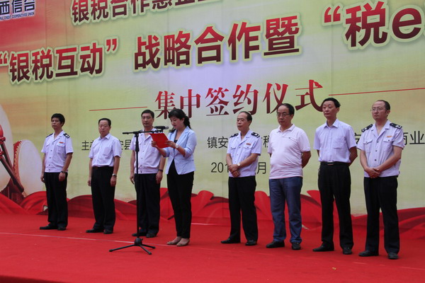 任淑霞在讲话中希望国税、地税和农商行三方要以此次活动为契机,进一步做好业务推广工作,建立健全纳税信用评价体系,简化信贷程序,在解决镇安当地小微企业融资难的同时,进一步扩大我县纳税信用等级评定的运用范围,增强企业依法纳税的意识和对纳税信用等级的重视程度,促进“诚信社会”建设。