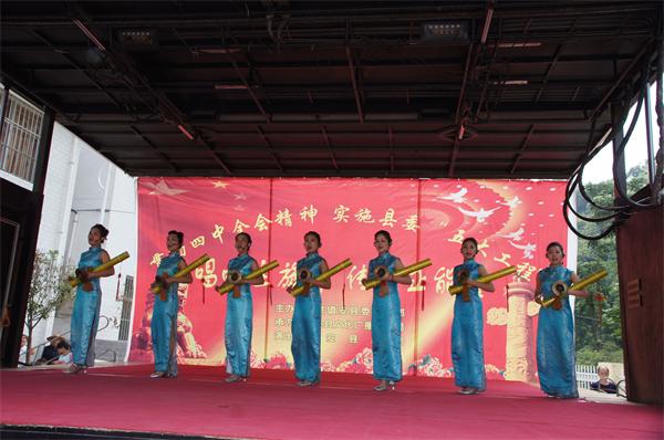 县剧团的演员们充分结合党的十八届四中全会精神和我县实施富民强县“五大工程”的战略部署,以县内奋发有为、为民谋福祉的干部群众的真实故事为背景改编和自编自演,通过花鼓小戏曲《第一书记》、渔鼓说唱《五大工程兴镇安》、小品《“访叔”息访记》、歌伴舞《共圆中国梦》等内容丰富、贴近群众生活实际又喜闻乐见的形式,让群众在享受文化大餐的欢声笑语中亲身了解十八届四中全会精神和我县系列惠民政策。