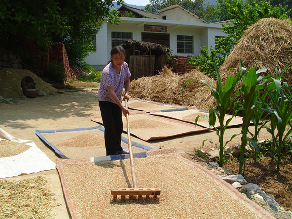 北宽坪镇全脉村农民正在收割小麦。6月份以来,北宽坪镇小麦相继进入收获期,广大农民群众利用天气晴好的有利时机,纷纷抢收冬小麦。