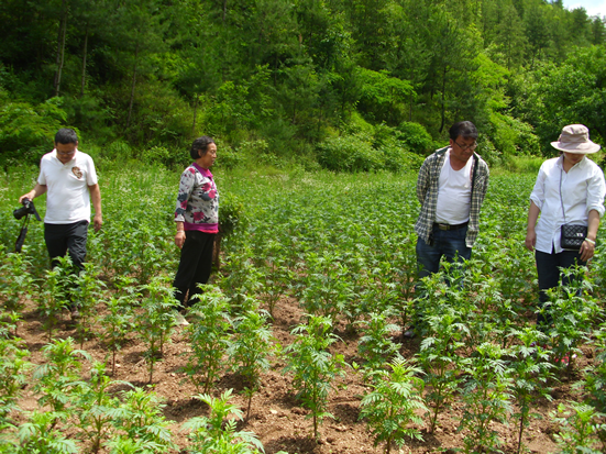 “为了蟒岭绿道生态旅游景区,我种了1亩多万寿菊,不知怎么了,万寿菊苗不光长得慢,还一块块地死苗?昨天北宽坪镇农牧站的农技人员彭建文冒雨来我花地,他给我配送了防治药物百菌清、多菌灵、病毒A,让我将严重病苗拔掉重栽,要求7天重喷药一次,共喷3次。今天你们上面农技专家又来到我花地,现在的干部真好。”张彩娥又来到田里拔了几棵万寿菊病苗问起了专家。