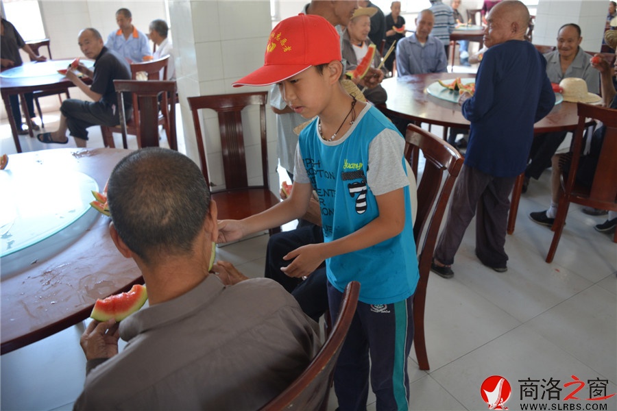 商洛之窗讯(郝家桥)2015年7月23日,镇安朝阳志愿者协会近20人在县中心敬老院开展“情系夕阳、清凉一夏”志愿活动,为老人们送去爱心照片和西瓜,让他们感受夏日的凉爽和关爱。