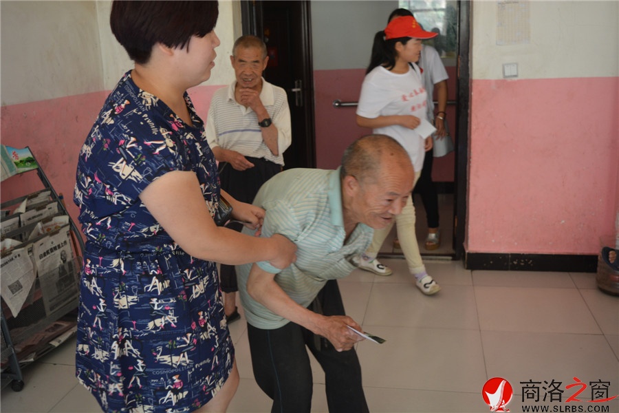 商洛之窗讯(郝家桥)2015年7月23日,镇安朝阳志愿者协会近20人在县中心敬老院开展“情系夕阳、清凉一夏”志愿活动,为老人们送去爱心照片和西瓜,让他们感受夏日的凉爽和关爱。