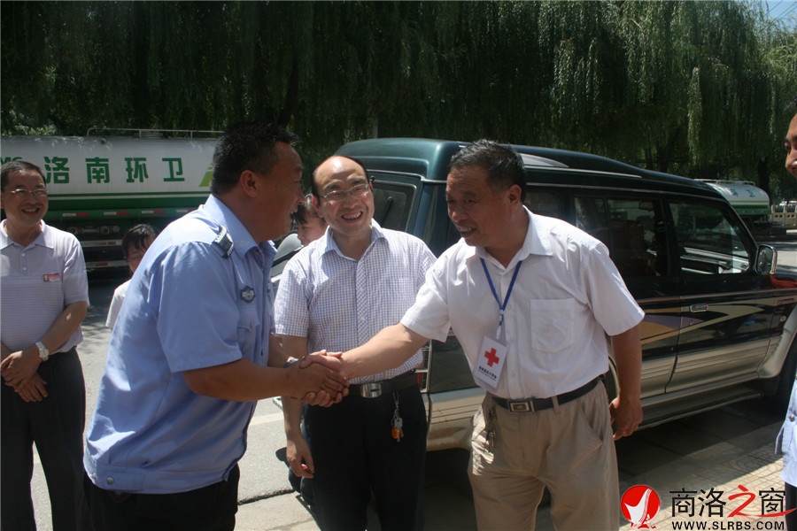 商洛之窗讯(陈晓锋)8月6日,洛南县红十字会开展夏日送清凉活动,向烈日下坚守工作岗位的环卫工人、交警和路政执法人员送去价值5000多元的饮品、防暑降温药品和帐篷。