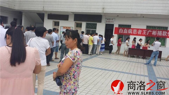 本报讯 (孙传卿 罗英英)8月17日下午3点,商南县湘河镇政府大门口已等候着许多群众,问明来意才知道,他们都是为白血病患者王广彬捐款的。“年龄那么小,就得那病,上有老,下有小,太可怜了!”该镇红鱼村68岁村民王玲抹着泪说。“虽然钱不多,但这是我的一份心意,每人都献出一份爱心,这个社会才能更好。”“谁没个大病小灾,何况他病这么重,能帮一点是一点吧!”捐款的人们皆是满面愁容。