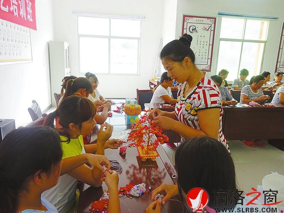 七月十七日,商南县清油河镇后湾村举办串珠工艺培训,四十三名留守妇女参加了培训学习。目前,手工编织品在旅游市场销售很旺,串珠工艺可望为留守妇女开辟新的增收渠道。 (王恩波 摄)