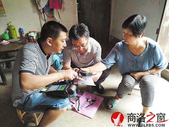 在柞山高速拆迁补偿资金陆续到位的近两个月来,农行柞水支行的党员和员工以﹃5+2﹄﹃白+黑﹄的模式奔赴各村镇,用移动POS机帮村民办理业务,让群众切身感受到了农行的贴身、贴心服务,得到了广大村民的一致好评和广泛赞誉。(卢英 刘燕丽 摄)
