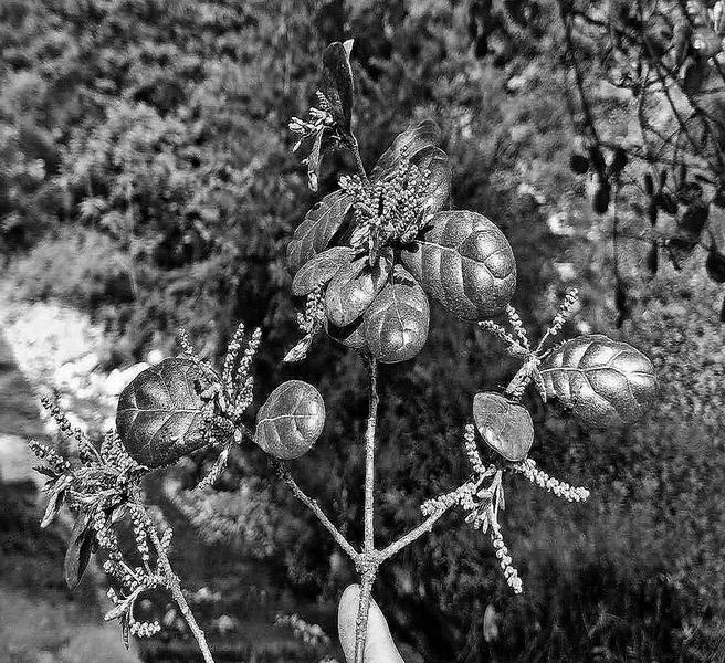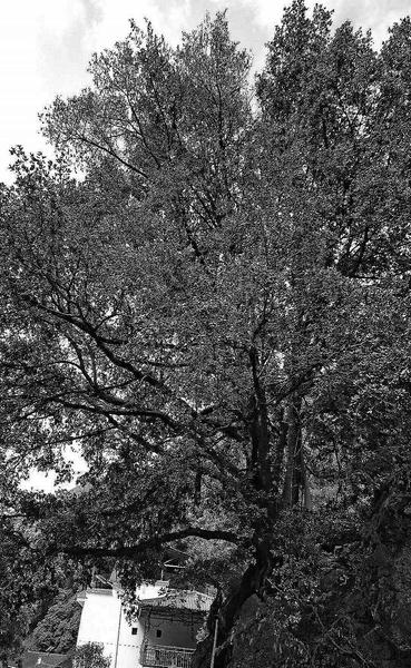 这是一簇丛生的灌木状乌冈栎,属于国家一级保护树种。整棵树从根部分为5个主干,基部合起来约4人合围,1993年就被柞水县林业局挂牌为“国家重点保护树木”。乌冈栎是壳斗科栎属的常绿乔木,常生于山地岩石上,一般花期在3-4月,果熟期在9-10月。资料记载,它在我国长江流域中下游和南部各省区生长,北至陕西均有分布。