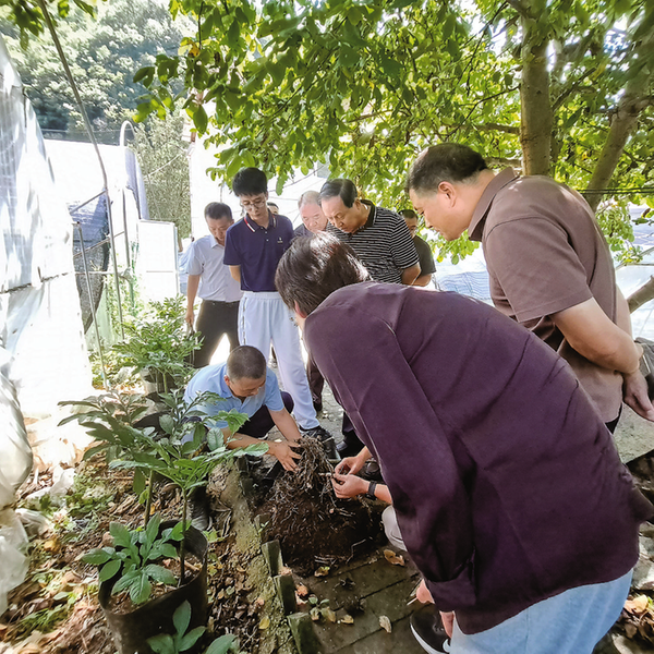 9月2日,陕西魔芋体系专家在镇安县云盖寺镇东洞村调研袋栽模式魔芋生长情况。 (资料照片)